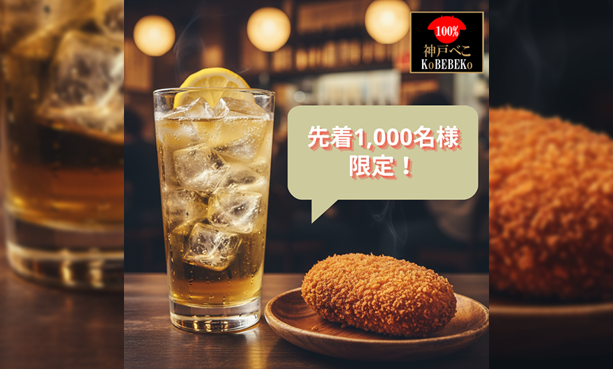 神戸牛100% コロッケ1個 + ハイボール1杯プレゼント!12/15(月)ご来場の方【先着1000名様】に 「神戸牛100%コロッケ1個+ハイボール1杯」をプレゼント!
