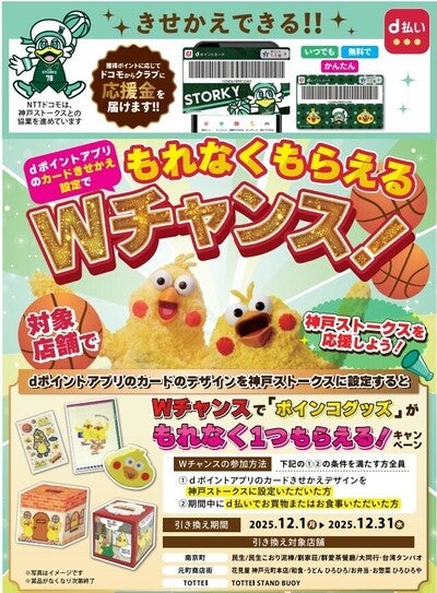 「dポイントクラブアプリ」及び「d払いアプリ」のデジタル券面を、神戸ストークス仕様のデザインに変更することで、日常のお買い物でクラブを応援できる「神戸ストークス応援キャンペーン」とも連動しておりますので、より多くのブースターの皆さまに本キャンペーンに参加いただけますと幸いです。