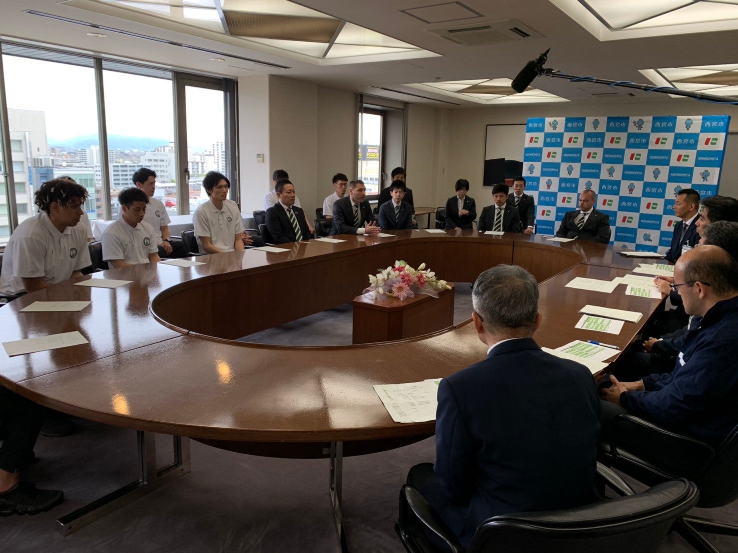 2019年4月24日(水)2018-19シーズン終了のご報告と御礼のため、西宮市役所へ代表取締役社長渡瀬、全選手、チームスタッフが表敬訪問いたしました。