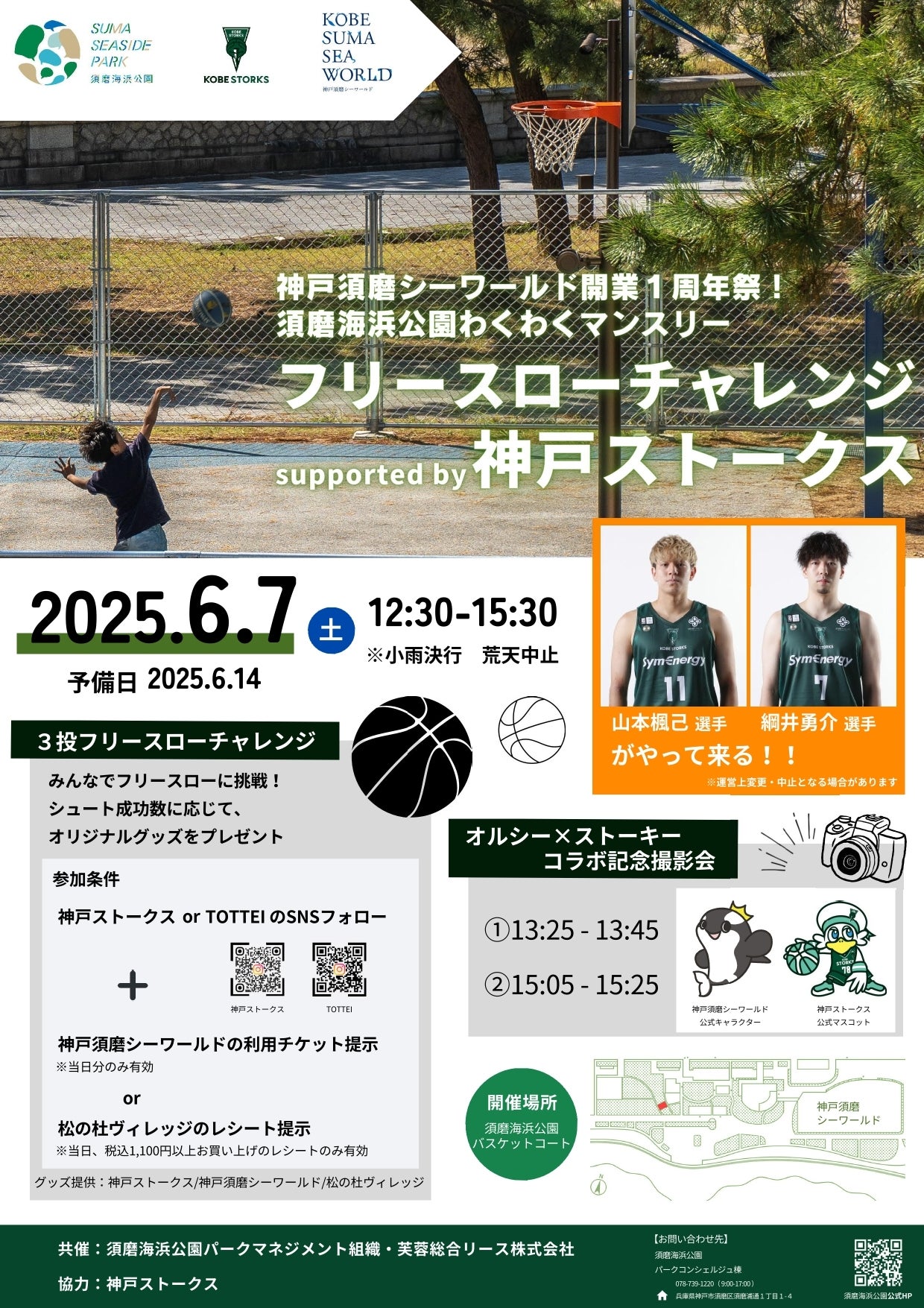 本イベントは、GLION ARENA KOBEをホームアリーナとするプロバスケットボールチーム・神戸ストークスと須磨海浜公園を繋ぎ、地域に新たな賑わいを創出するスポーツを通じたまちづくりの取り組みとして開催されます。