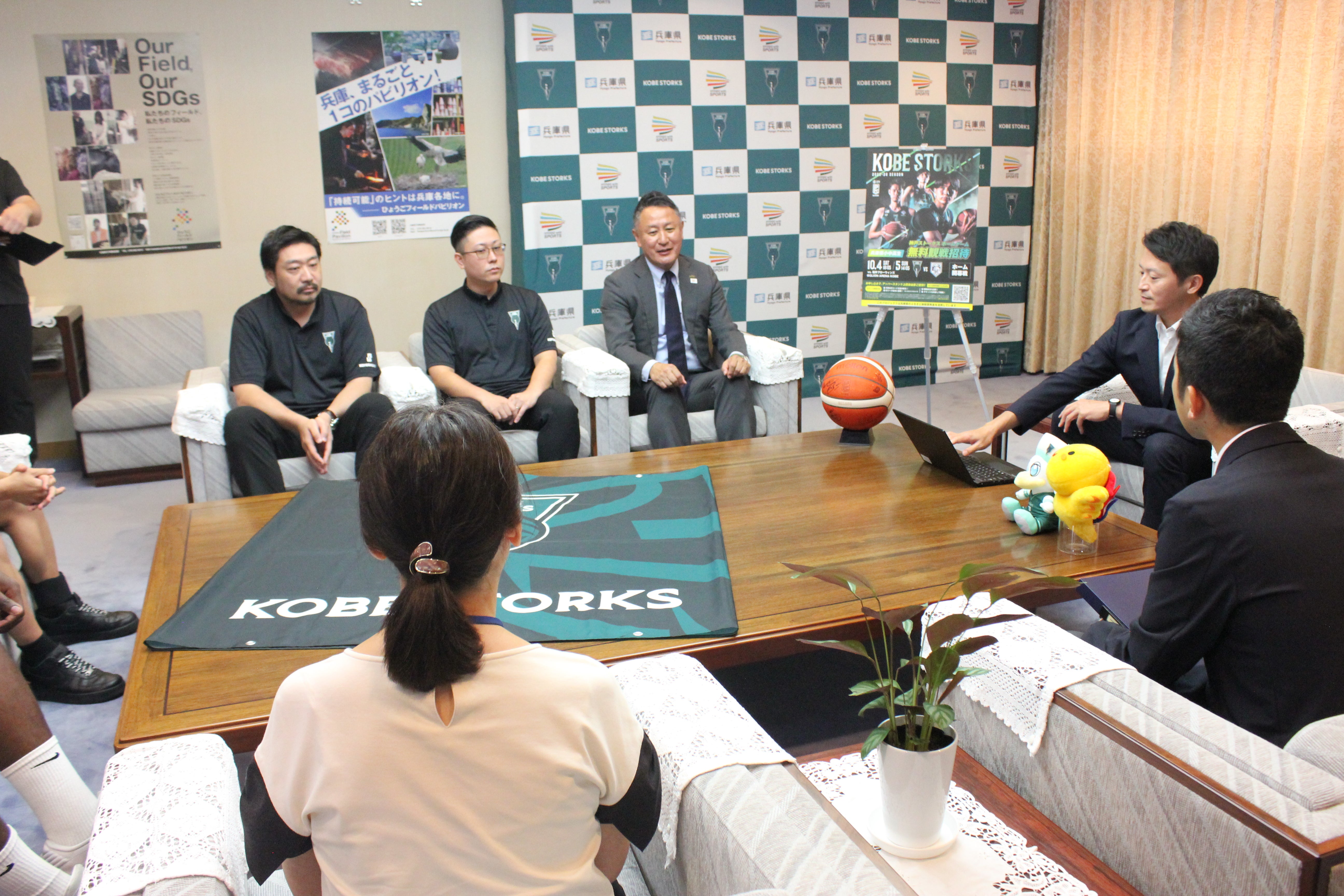 このたび神戸ストークスは、9月18日(木)に兵庫県庁、9月30日(火)に神戸市役所を表敬訪問いたしました。川辺泰三ヘッドコーチ、キャプテンの寺園脩斗選手、アイザック・バッツ選手が齋藤元彦兵庫県知事、久元喜造神戸市長をそれぞれ訪問し、2025-26シーズンに向けた決意表明を行いました。