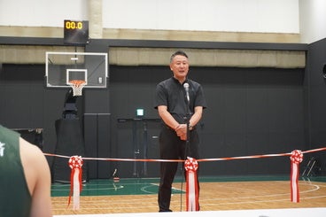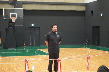 式典冒頭では、主催者を代表して神戸ストークス代表・渋谷より、ご支援への御礼とともに、「デジアラBASEをストークス、地域の皆さま、そして未来を担う子どもたちの拠点として大切に育んでいきたい」との想いを述べました。