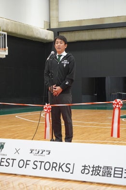 続いて、株式会社デジアラホールディングス代表取締役・有本哲也様より、今回のパートナーシップ締結への喜びと「地域とともに歩むクラブであるストークスの挑戦を、企業として力強く支えていきたい」とのお祝いと激励のお言葉を頂戴しました。
