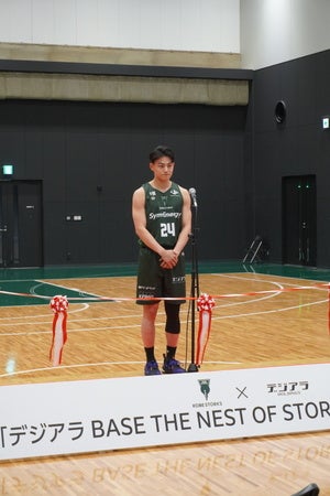 その後、川辺泰三ヘッドコーチ、中島三千哉選手が登壇。クラブを代表し、デジアラホールディングスさまへの感謝を伝えるとともに、「新たな拠点を背に、ブースターのみなさんと共に今シーズンを戦い抜きたい」と力強い意気込みを語りました。