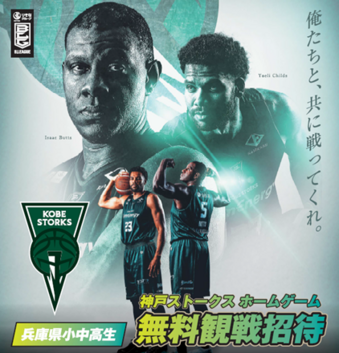 今回は10月-11月の試合に引き続き、12月に開催される神戸ストークスのホームゲーム5試合に、県内の小中高生を無料でご招待します。