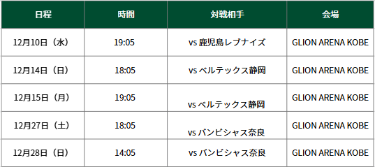 対象試合:2025年12月10日(水)からのホームゲーム5試合