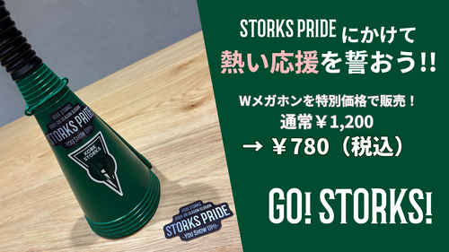 STORKS PRIDEステッカー付きWメガホンを数量限定で販売。