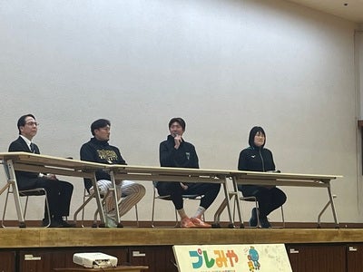 その中で、「プレみやフリートーク」というプログラムにクラブエバンジェリストの中西良太が登壇し、元プロ野球選手の秋山拓巳さん(阪神タイガース)、元バレーボール選手の坂下麻衣子さん(JTマーヴェラス他)、西宮市の藤岡謙一教育長とともにトークショーを行いました。