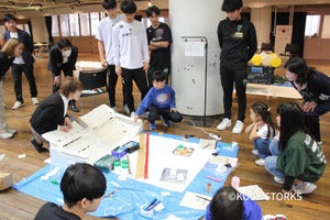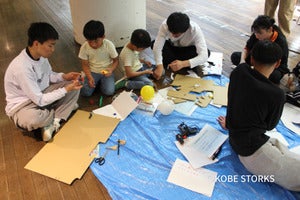 また、神戸ストークスU18のメンバーもサポートとして参加し、こどもたちと一緒に意見を出し合いながらものづくりに取り組みました。憧れの存在であるお兄さんたちと交流しながら、和気あいあいとした雰囲気の中でアイデアを形にしていく様子が見られました。